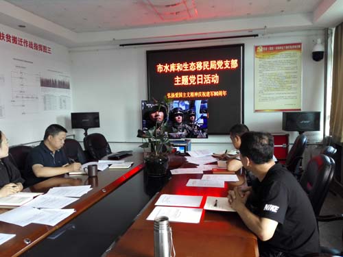 “八一”建军节即将到来之际,为进一步激发广大党员干部爱党、爱国、爱军热情,2017年7月28日下午,市水库和生态移民局党支部举行“弘扬爱国主义精神、庆祝建军九十周年”党员主题日活动。
