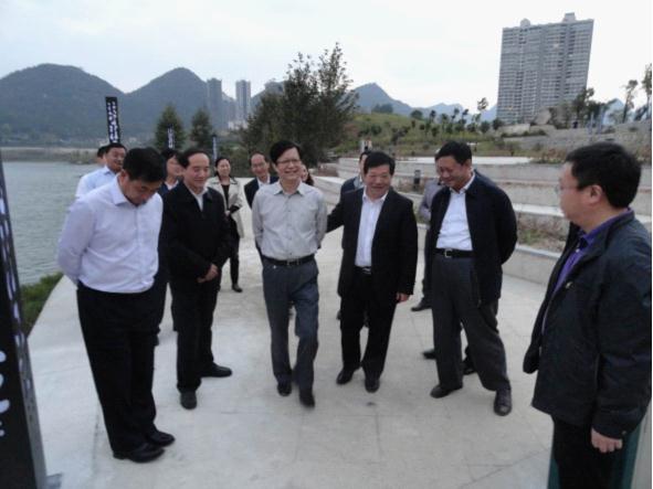 10月26日,省水库和生态移民局到六盘水市调研扶贫生态移民和水库移民后期扶持工作。(图左三为省水库和生态移民局党组书记、局长王应政,右三为六盘水市市长周荣,左二为市委副书记、组织部部长杨昌鹏,右二为市委常委、水城县县委书记张志祥,左一为水城县县长王尔彬)